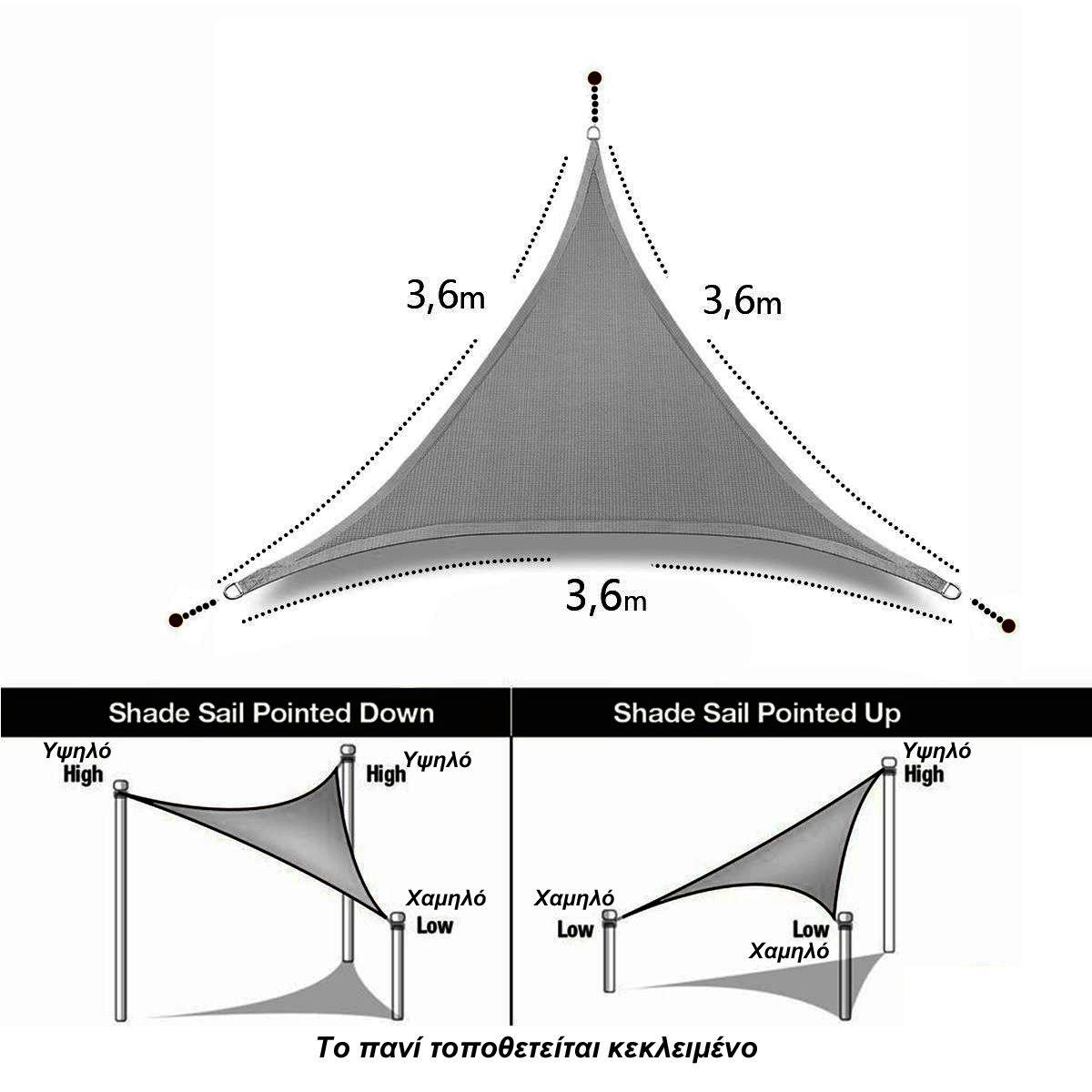 Τριγωνικό Πανί Σκίασης 3.6mx3.6mx3.6m Γκρι 180gr/m²