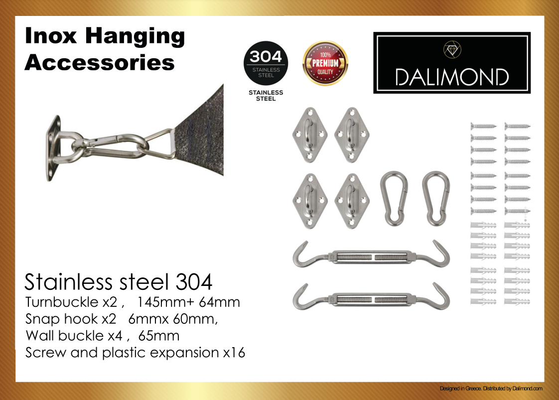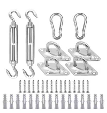 Σετ ανοξείδωτα αξεσουάρ για τη στερέωση διχτυών σκιάσης.