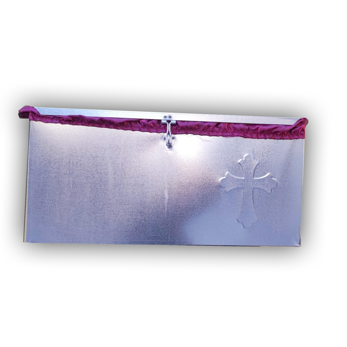 Οστεοθήκη για οστεοφυλάκειο μονή ντυμένη σε χρώμα ασημί και διάσταση : 48 -50 (μήκος) x 24,5 (πλάτος) x 22 (ύψος) εκ.