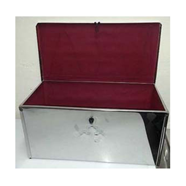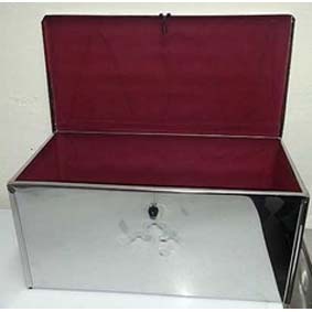 Οστεοθήκη για οστεοφυλάκειο ΙΝΟΧ μονή ντυμένη σε χρώμα ασημί και διάσταση : 48 -50 (μήκος) x 24,5 (πλάτος) x 22 (ύψος) εκ.