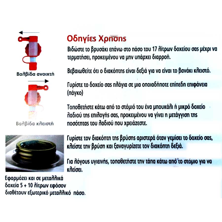 Βαλβίδα βρύση δοχείου λαδιού πλαστικό με μεταλλικό πάσο αρίστης ποιότηταςΚατάλληλη για τρόφιμα (PP,PE)
