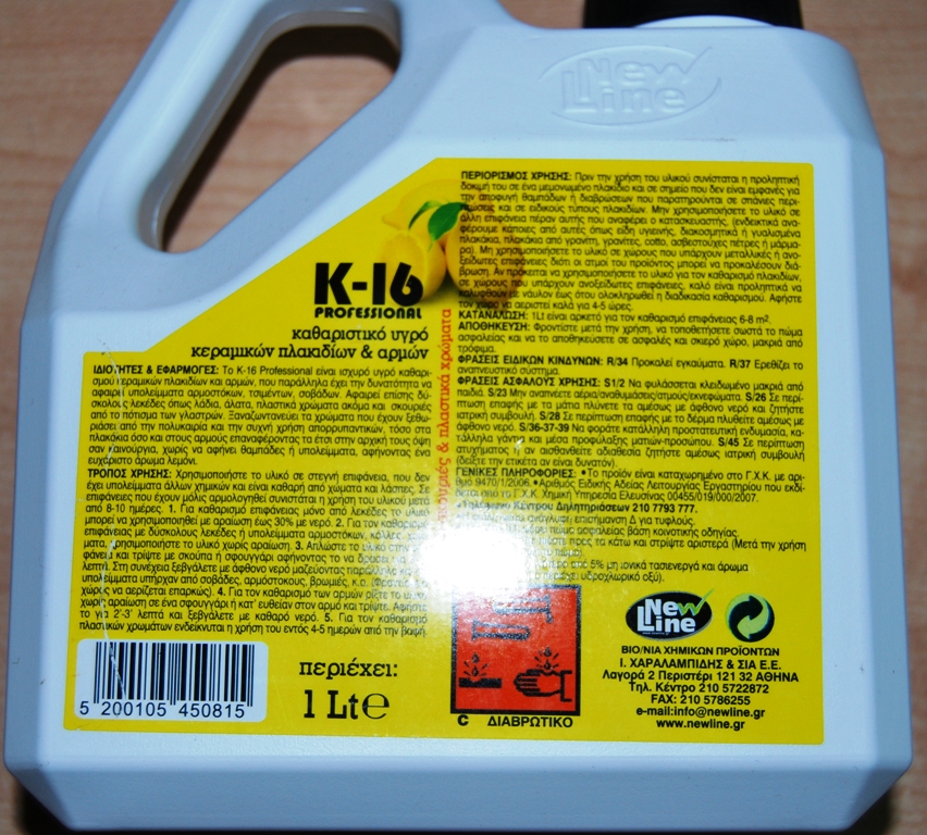 ΚΑΘΑΡΙΣΤΙΚΟ ΠΛΑΚΙΔΙΩΝ ΚΑΙ ΑΡΜΩΝ Κ-16 1lt