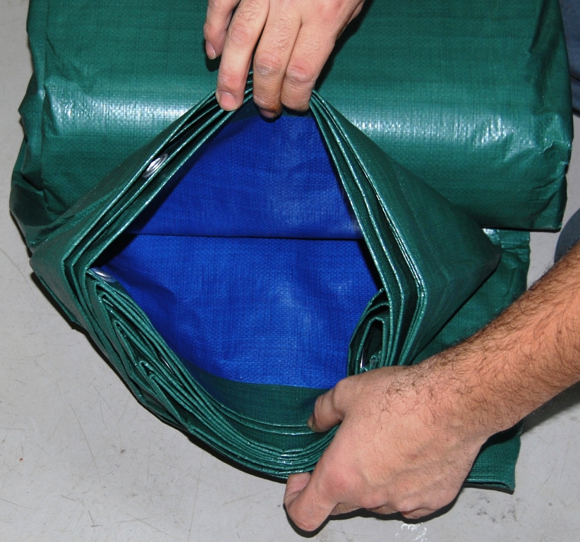 Μουσαμάς πράσινος μπλέ 8Χ12 140 γραμμάρια ανά τετραγωνικό μέτρο με κρίκους μπουντούζια γύρω γύρω και ανά ένα μέτρο