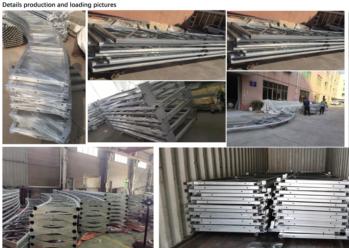 Μέγεθος : Μέγεθος (Arc Design 6x12x6m) τέντα σκηνής εμπορευματοκιβωτίων Πλάτος ανοίγματος: 6.00m Μήκος σκηνής: 12.00m Ύψος μαρκίζας: 2.59m (ύψος εμπορευματοκιβωτίου) Ύψος κορφιά - κορυφογραμμής: 5.00m Μέγεθος χαλύβδινου σωλήνα γαλβανισμένος χαλυβδοσωλήνας 50 * 2,0 χιλιοστά και 25 * 2 χιλιοστά γαλβανισμένο χαλυβδοσωλήνα μέγεθος, 40*2mm για τεγίδα Απόσταση κόλπων: Απόσταση από το εσωτερικό του κτιρίου: 3.00m