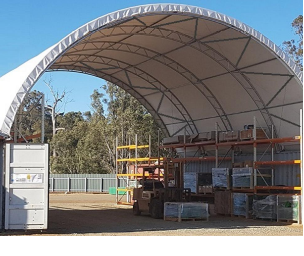 Warranty: The shed will be under warranty for the period of 1 years to cover defects in design and manufacture of the galvanised steel structure, fabric covering and connections mechanism of the fabric and steel. Normal wear and damage by the buyer are excluded. Roof cover system 900gsm pvc/PVDF double side coated fabric for roof covering