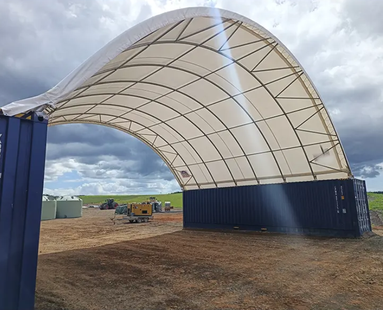Warranty: The shed will be under warranty for the period of 1 years to cover defects in design and manufacture of the galvanised steel structure, fabric covering and connections mechanism of the fabric and steel. Normal wear and damage by the buyer are excluded. Roof cover system 900gsm pvc/PVDF double side coated fabric for roof covering