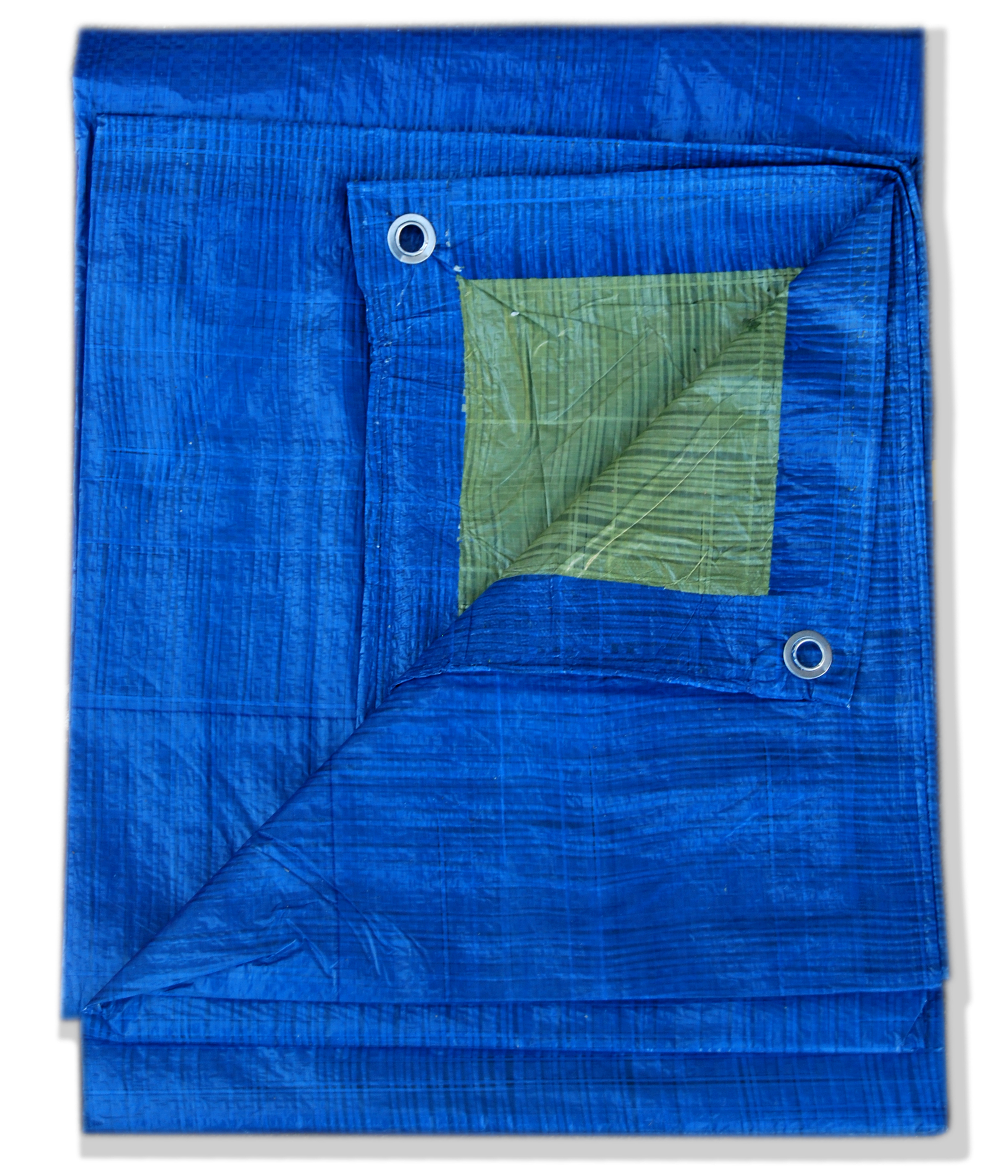 Μουσαμάς διπλής όψης (πράσινο-μπλε) 3Χ4 65 γραμμάρια ανα τετραγωνικό μέτρο με κρίκους περιμετρικά.