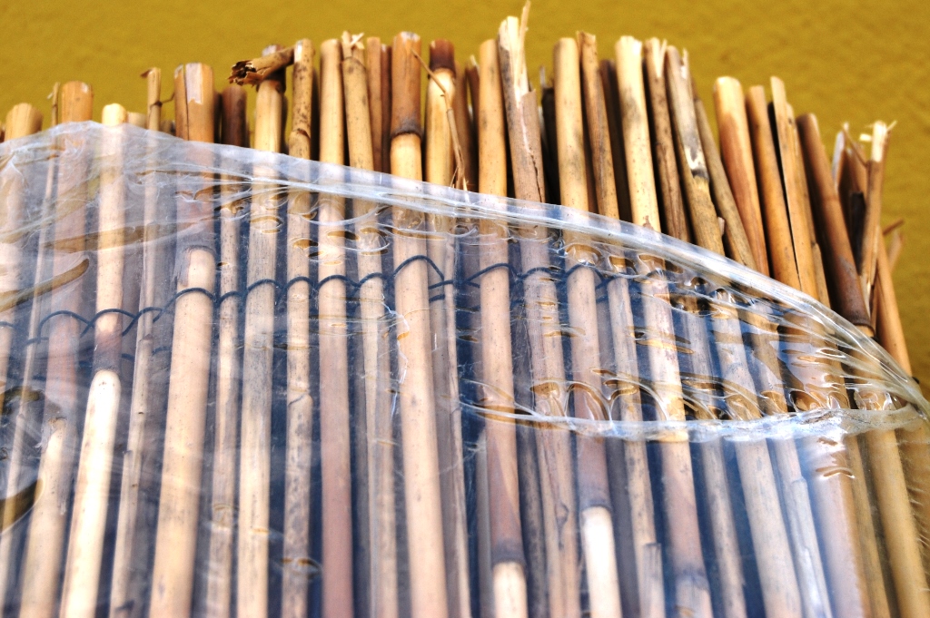 Καλαμωτή από μπαμπού σε χρώμα μπεζ- καφέ με σύρμα.