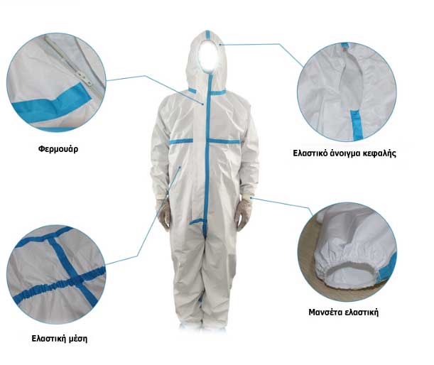 Η προστατευτική ολόσωμη φόρμα είναι κατασκευασμένη από ύφασμα ΝON WOVEN. Μπορεί να χρησιμοποιηθεί σε σημεία πρόληψης επιδημιών, επιχειρήσεις και ιδρύματα φραγμού καραντίνας, επιθεώρηση, έλεγχος ασφαλείας, προστασία χημικών υλικών, επικίνδυνα υγρά και προστασία από πιτσιλίσματα αίματος.