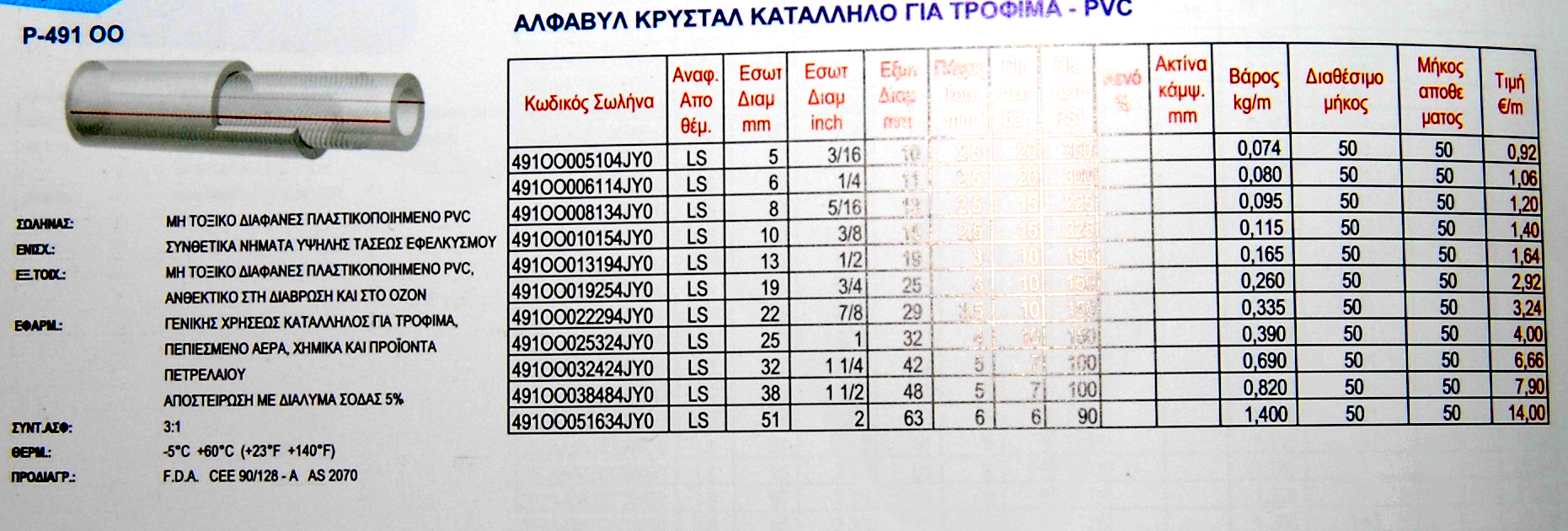 Λάστιχο Κρυστάλ κατάλληλο για τρόφιμα και Ποτίσματος 13mm Alfagomma pVC