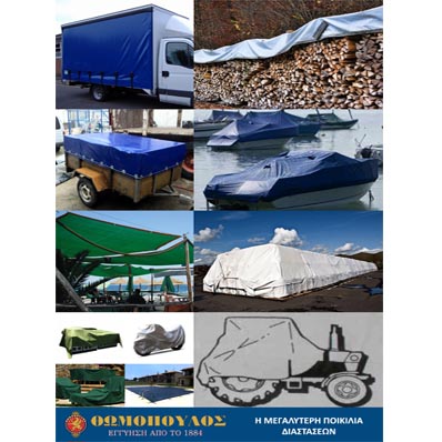 Αδιάβροχος, πολύ ανθεκτικός μουσαμάς κατάλληλος για την προστασία σκαφών, αντικειμένων, εμπορευμάτων,ξύλων κ.α. από τις καιρικές συνθήκες όπως τη βροχή, την υγρασία και τον ήλιο.