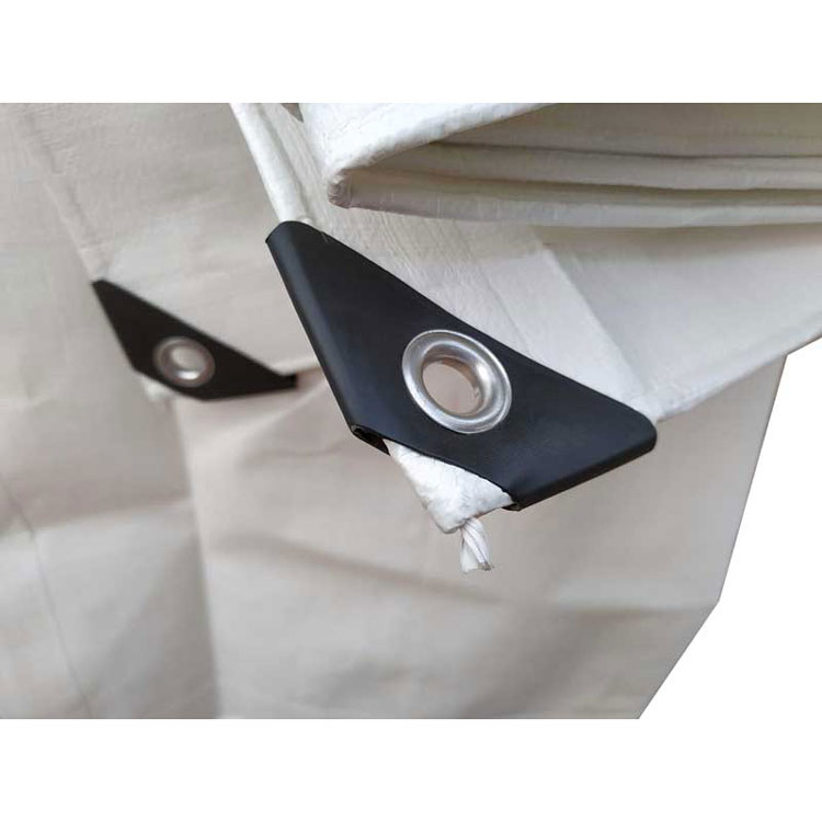 Μουσαμάς λευκός 10x10 190 γραμμάρια ανά τετραγωνικό μέτρο με κρίκους περιμετρικά ανά μισό μέτρο.