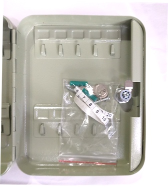 Μεταλλική κλειδοθήκη σε γκρι χρώμα με επινικελωμένη κλειδαριά και δυνατότητα στήριξης στον τοίχο. Συνοδεύεται από δύο κλειδιά και αριθμημένες ετικέτες.