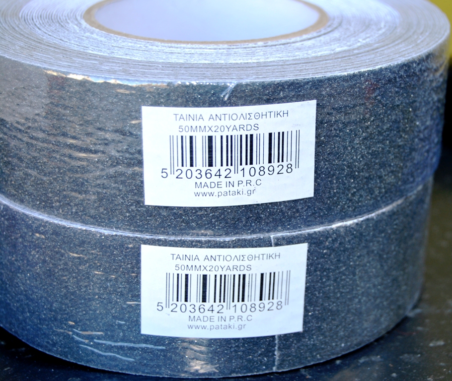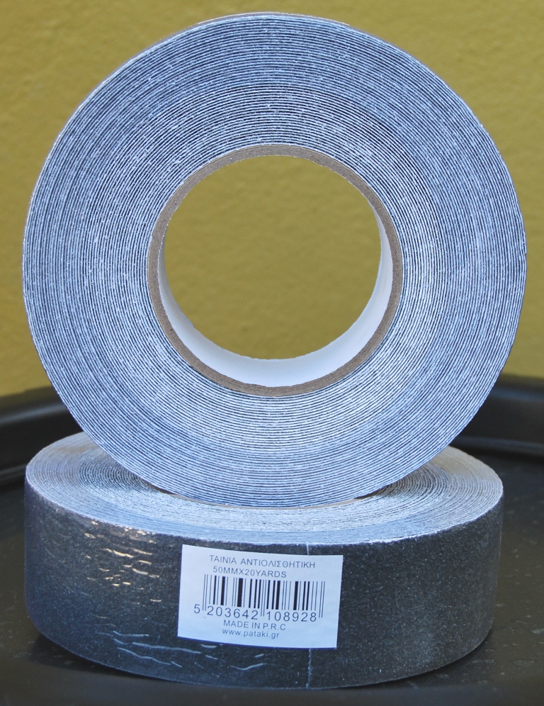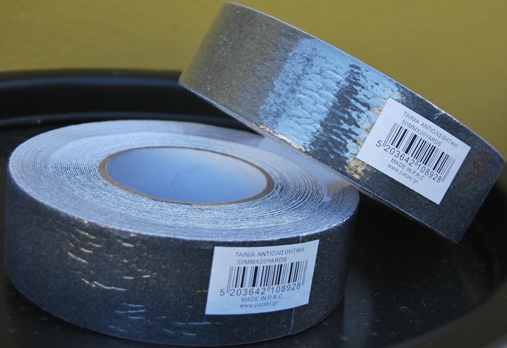 Αυτοκόλλητη ταινία για σκαλοπάτια, σκάλες, σκάφη και όλες τις εφαρμογές που απαιτούν αντιολίσθηση. Μήκος 20 υάρδες=18 μέτρα. Πλάτος 50 mm=5 εκατοστά.