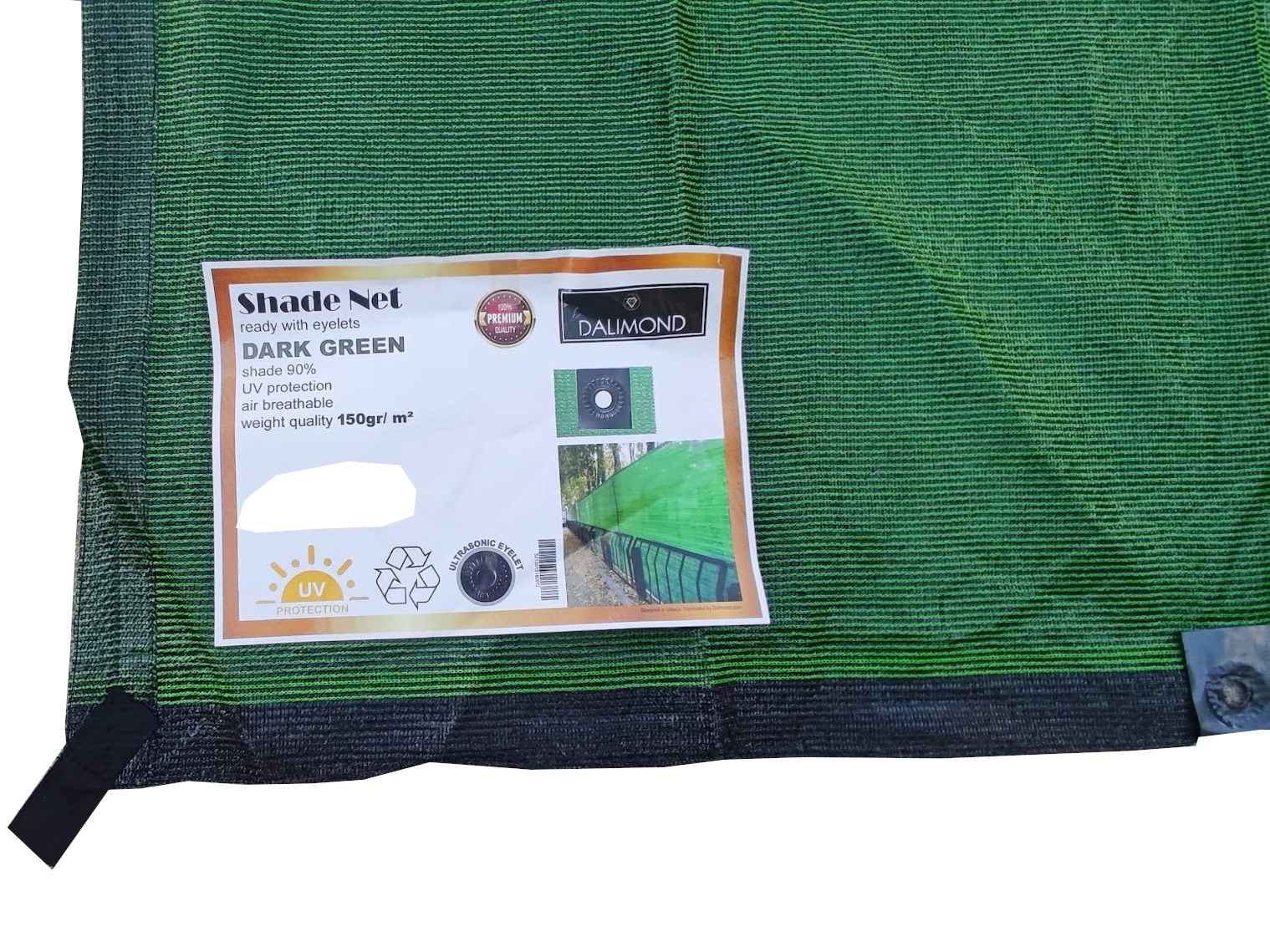 Βάρος ανά τμ 150γρ Σκίαση 90% Με πλαστικούς κρίκους-ultrasonic eyelets περιμετρικά ανά 50εκ. Με φάσα περιμετρικά για ενίσχυση.