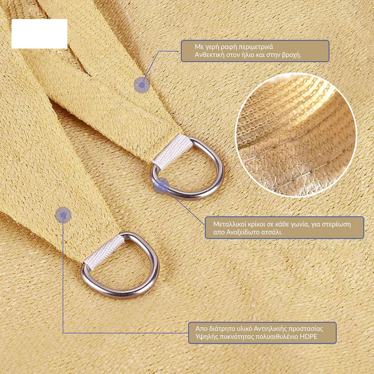 Με γερή ραφή περιμετρικά ανθεκτική στον ήλιο και στην βροχή.